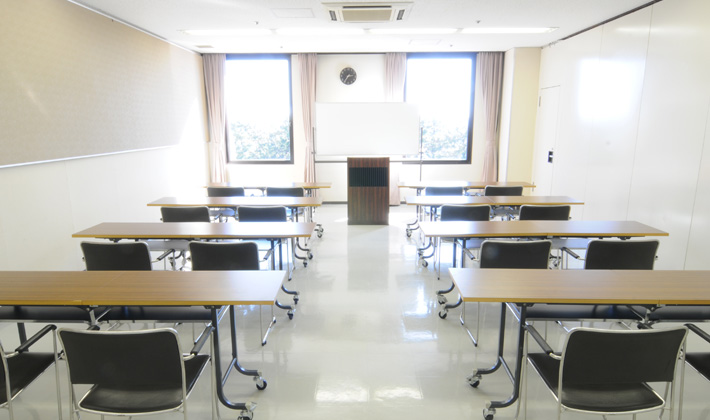 研修室は3室。間仕切りを外してひと部屋としてお使いいただくことも可能です。小ホールご利用時の楽屋としてもお使いいただけます。 60平方メートル(18坪) 3室
