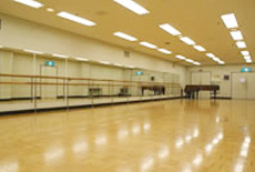 リハーサル室は鏡、レッスンバー完備。音楽練習室はドラムセット、各種アンプ類の貸し出しも行なっています。
