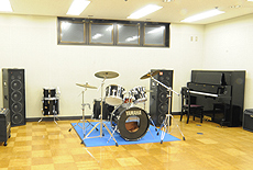 音楽練習室はドラムセット、各種アンプ類の貸し出しも行なっています。